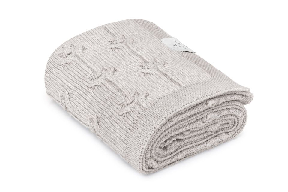 Babydecke aus 100% Merinowolle Light Grey Floral – Premium Collection