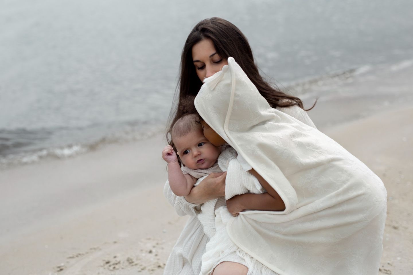 Eine Bambusdecke für Eltern, die Wert auf stilvolle Accessoires legen. Die elegante Webart und der Rüschenbesatz heben die Decke durch ihr einzigartiges Aussehen von anderen ab. Die Decke ist aus hochwertigem Bambusgarn mit Baumwollzusatz gestrickt, das für die empfindliche Haut von Babys ab dem Tag der Geburt geeignet ist.