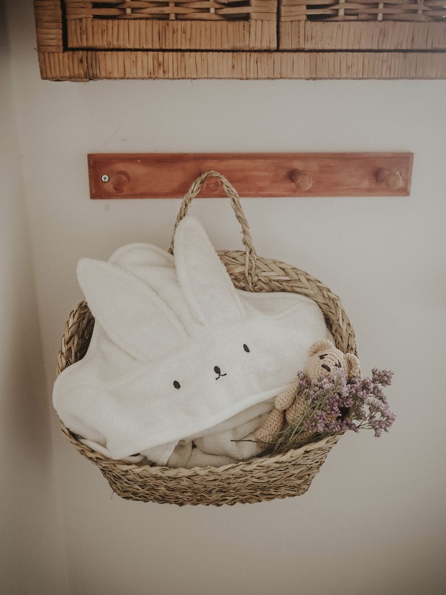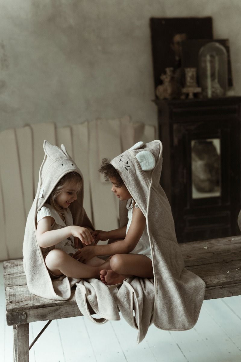 Das Handtuch hat niedliche Ohren und eine Stickerei auf der Kapuze, während sich auf der Rückseite eine funktionelle Halskrause für die Eltern befindet. Diese Lösung ermöglicht es den Eltern, das Baby unmittelbar nach dem Baden zu kuscheln, was ein Gefühl der Nähe und Sicherheit vermittelt.
