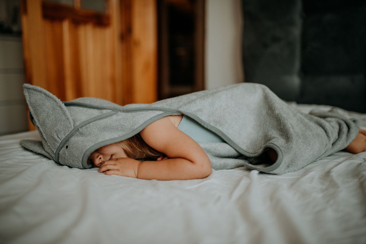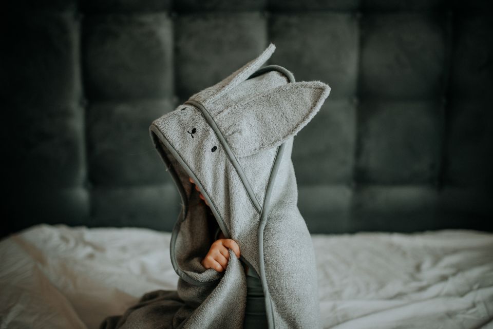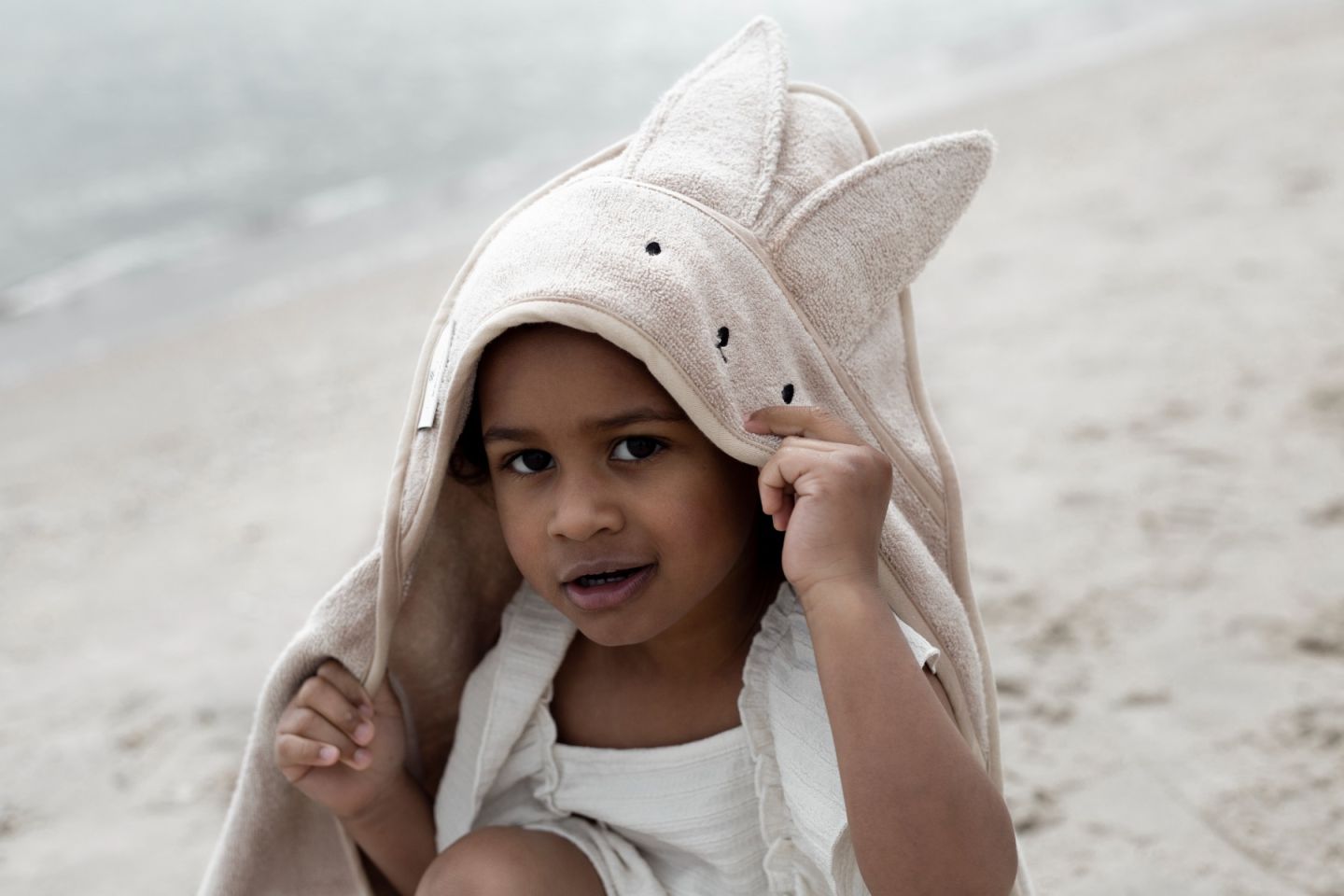 Das Handtuch wurde in einer großen Größe entworfen, so dass es sowohl von einem Baby als auch von einem 3-Jährigen verwendet werden kann.