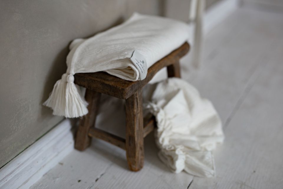 Das Produkt zeichnet sich durch sein zeitloses Design aus, das dem Boho-Style entspricht. Der strukturierte Bambusstoff ist mit einem zarten Muster verziert und wird von vier natürlichen Knäueln abgeschlossen.