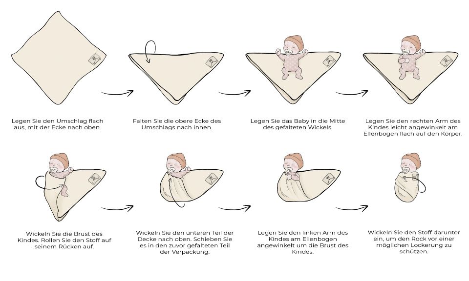 Das Tuch eignet sich aufgrund seiner Größe und seines elastischen Gewebes ideal zum Einwickeln des Babys und kann später als Decke verwendet werden. Diese große Größe ist auch für ein 4-5 Jahre altes Kind ideal.