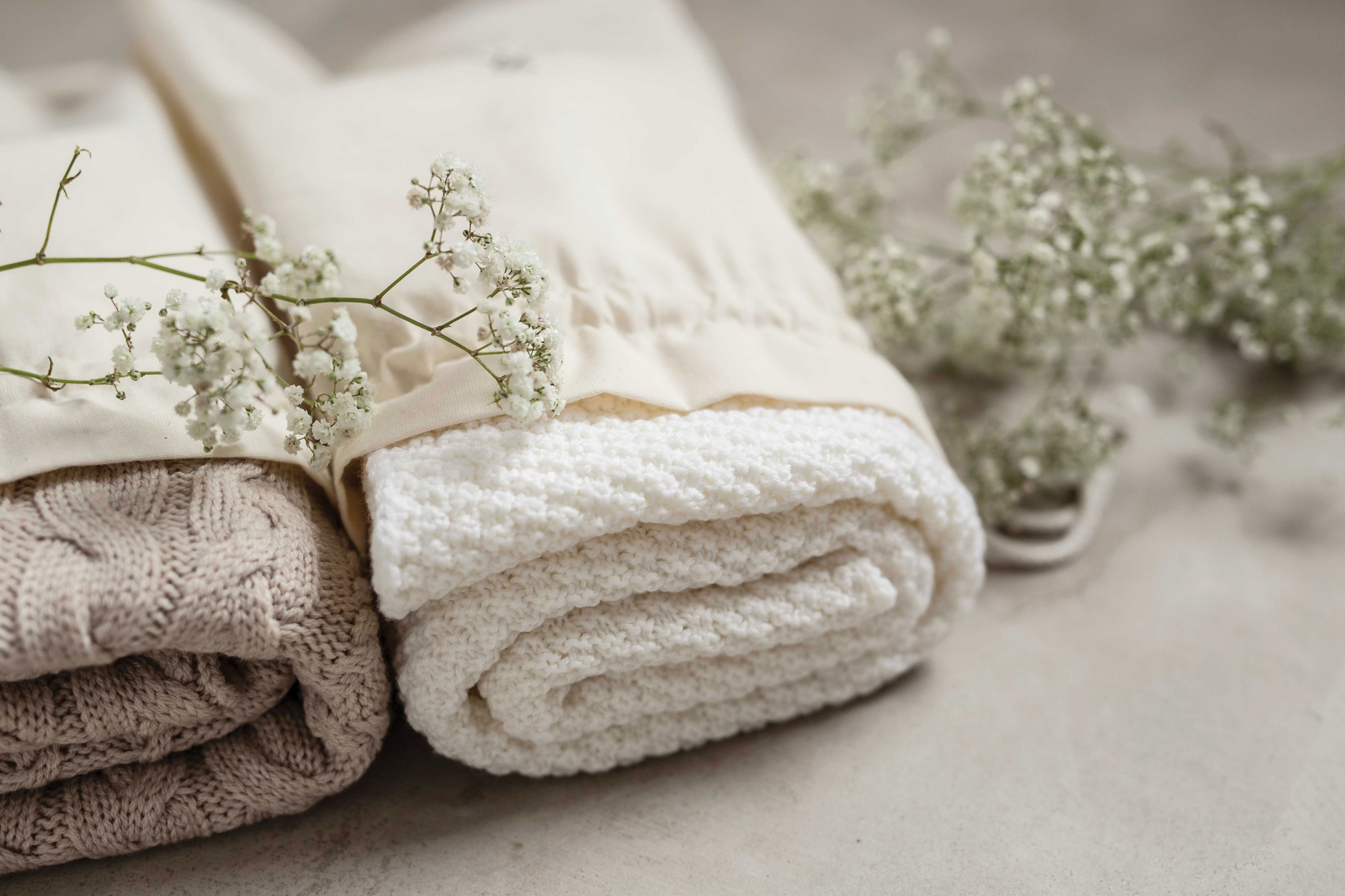 Merinowolle ist eine Faser mit hydrophoben Eigenschaften, was bedeutet, dass Schmutz und Flüssigkeiten langsamer in sie eindringen. Es besteht also die Möglichkeit, dass Sie einen Fleck entfernen können, bevor er überhaupt entsteht. Decken aus Merinowolle müssen nicht häufig gewaschen werden. Wenn Sie sie also öfters auffrischen möchten, lüften Sie sie einfach aus.